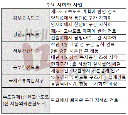 사실 지난번 부각이 '경부고속도로 지하화'이긴 했지만 구체적으로는 경부, 경인, 서부간선, 동부간선, 국제교류복합지구 등 추진되고 있는 지하화 사업들이 이미 있었죠.