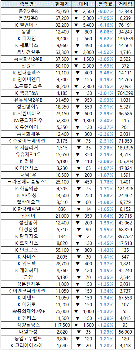 윤석열 테마주 (우선주) 시간외 일부 하락