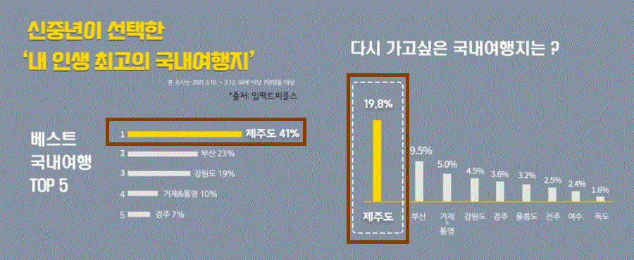 특히 국내 여행 관광지 중에서 높은 선호도의 1위를 차지하고 있을 뿐만 아니라, 남녀노소 다양한 연령층에 가장 인기가 많은 여행지로 제주도로 볼 수 있는데요.
