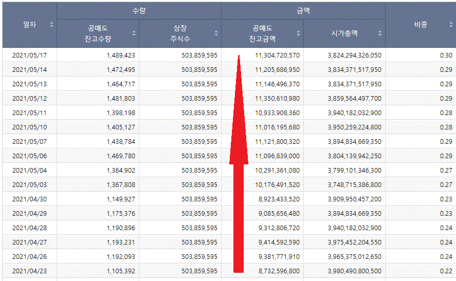요새는 워낙에 주의할 것들이 많이 있죠. 공매도 입니다. 공매도 부분재개가 되면서 공매도 관련 상위 종목에 해당되진 않지만 해당 산업에 대한 공매도를 피할 수 없다는 것을 알 수 있습니다.