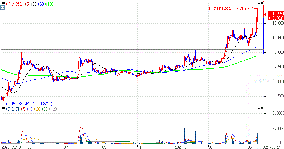성신양회는 최근 10,000원 구간에서 상승폭을 보여준 모습인데 거래량도 함께 보여준 모습입니다.
