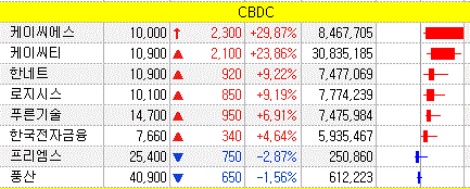 디지털화폐에 대해서는 지난해 9월경에도 말씀드렸다시피 국내보다는 해외 주요국가들이 이미 개발단계가 더 나아가 있는 상황이라고 했는데요. 우리 한국은행에서도 본격적인 모의실험에 참여한다는 소식으로 지난주 디지털화폐 CBDC 관련주가 부각을 보였습니다.