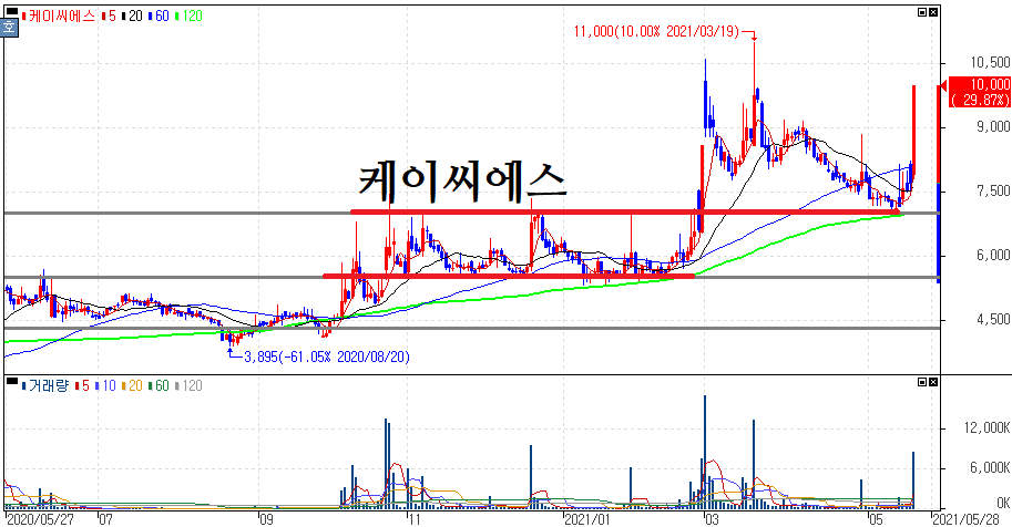 금일 상한가를 기록한 케이씨에스는 지난주 윗꼬리를 달고서 3%대 상승률만 보이고 말았는데요. 윗꼬리를 달아서 좋은것과 나쁜 것을 확실히 구분할 수 있는 것이 중요한 결정을 내리는데 도움이 되실겁니다.