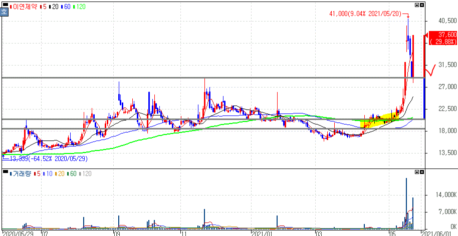 2021년 05월 25일 오늘의 상한가 종목 및 이유 :: 이연제약 이루온 셀루메드 주가
