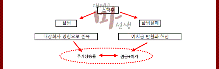 합병은 2개 이상의 회사가 하나의 회사로 되는 것을 의미하는데 스팩합병은 스팩주와 회사가 합쳐 하나의 회사로 된다는 것으로 보면 되죠.