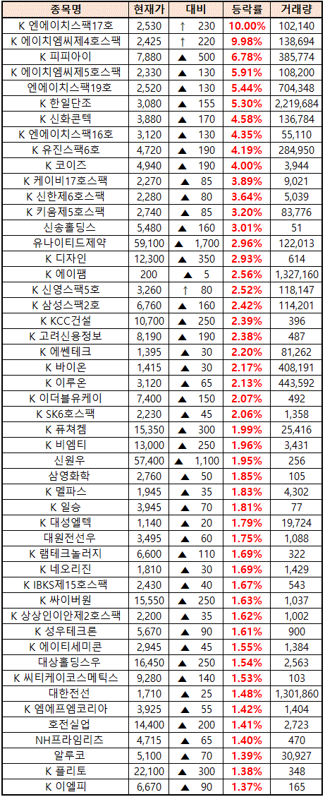 스팩합병 기대감으로 정규장 기업인수목적회사 테마 상승 속 시간외 영향