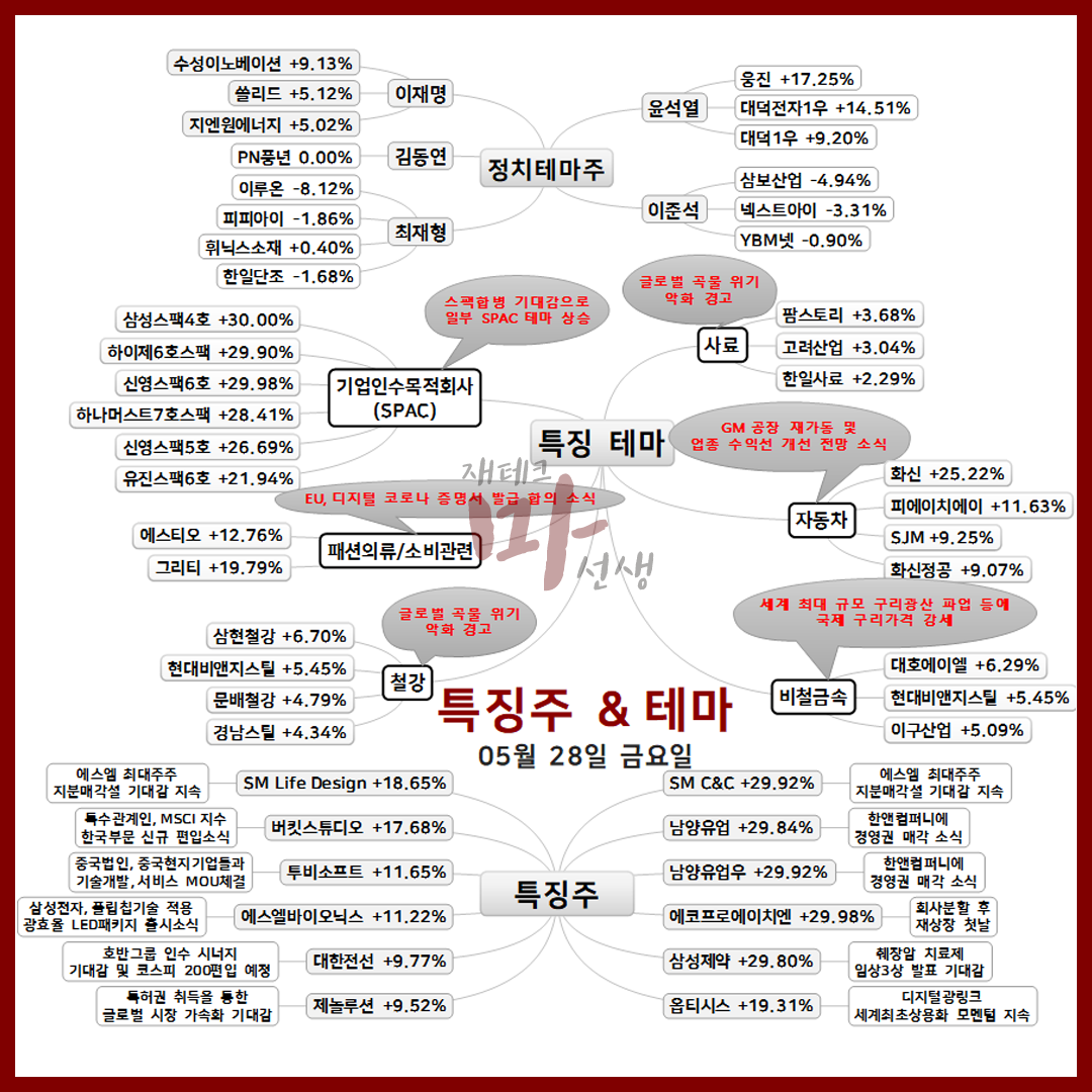 5월 28일 오늘의 상한가 종목 및 이유 :: 삼성제약 에코프로에이치엔 SM C&C 남양유업 주가 외