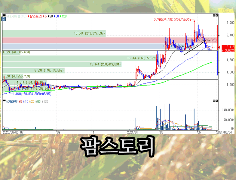 최근 국제곡물가격에서는 팜스토리가 가장 주목을 많이 받은 것은 사실이나 최근 상승폭을 반납했습니다. 배합사료를 제조하고 판매하는 업체 입니다.