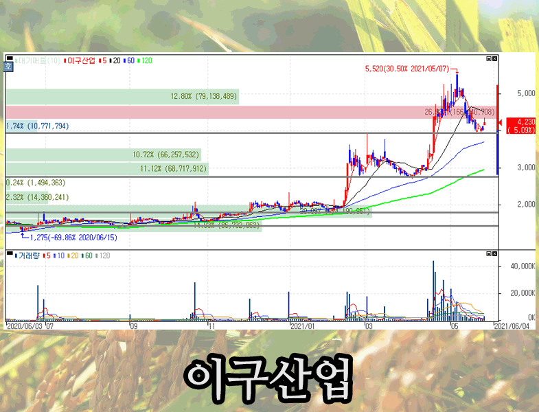 이구산업은 구리가공업체로 그동안 구리 가격과 함께 상승을 보였다는 것을 알 수 있습니다.