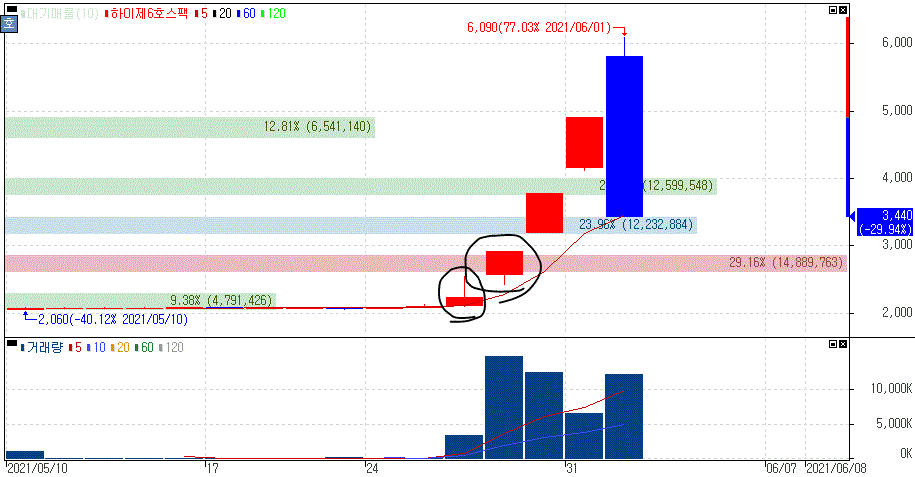 애초에 스팩주들이 이상급등을 보여주면서 투자보다는 투기의 성향으로 주가 변동성을 쉽게 예측할 수 있는데 좋다고 올라타면 곤란한 상황은 쉽게 연출되죠.