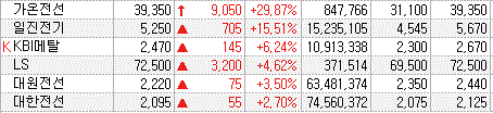 사실 어제도 전선주 상승종목이 있었기 때문에 시기적으로 전선주 흐름이 부각을 받는 재료가 충분했다고도 볼 수 있습니다. 다만, 금일 비철금속을 비롯한 기존 구리 관련주 종목들은 제자리를 보였습니다.