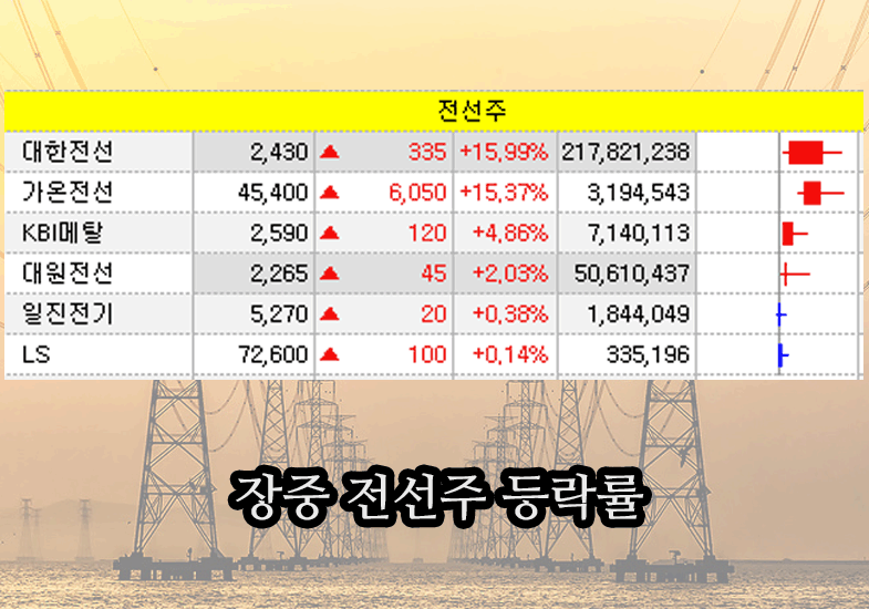 [테마주] 전선 관련주 (전선주) 대한전선 가온전선 대원전선 주가 외