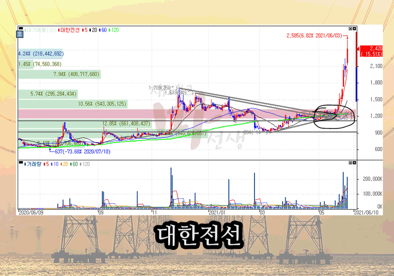 대한전선은 지난 연말부터 보여준 흐름에 이어서 강한 상승을 보여준 대한전선 주가 입니다.