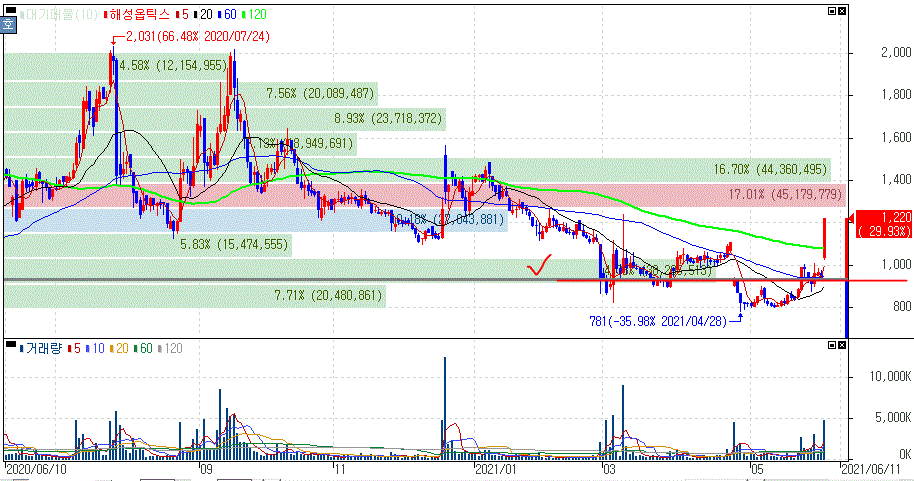세동은 자동차 부품제조업체인데요. 금일 앞서 해성옵틱스가 무상증자 권리락으로 인한 변동성을 보이면서 상한가를 기록했는데 세동은 지난 2일 무상증자 권리락이 발생했음에도 당시 상승이나 하락이나 주가 변동성은 없었죠. 하지만 금일 해성옵틱스의 부각을 먼저 받으면서 동반 상한가를 기록한 모습입니다.