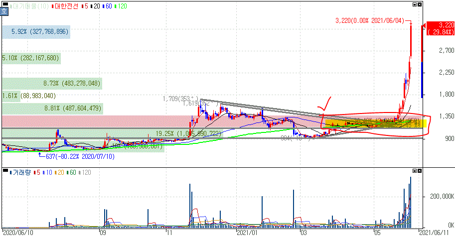 게다가 최근 전선주 원재료 가격 상승의 재료도 부각되면서 전선 관련주 상승세가 함께 동반되어 왔었다는 점도 참고하시길 바랍니다. 다만 그동안 상승 거래일이 많았던 만큼 추가 상승에 대한 부담감이나 리스크 관리면에서도 고려해야 한다는 것도 필요합니다.