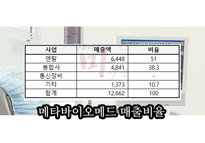 메타바이오메드 주가 매출비율 / 덴탈, 봉합사, 통신장비, 기타