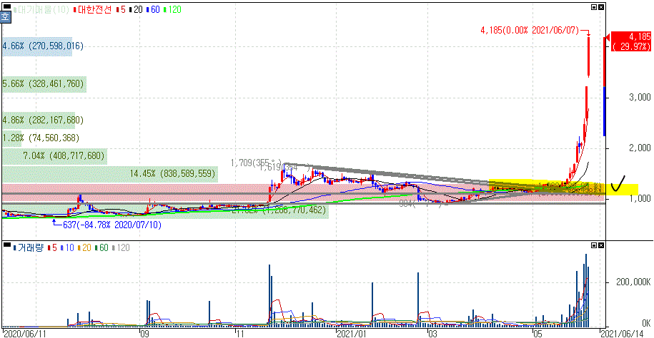2021년 06월 07일 오늘의 상한가 종목 및 이유 :: 한전산업 우진 우리기술 서전기전 보성파워텍 주가 외
