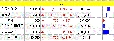 이로 인해 피플바이오, 퓨쳐켐, 메디프론, 메디포스트, 네이처셀 등의 주가 종목이 상승을 보였습니다.