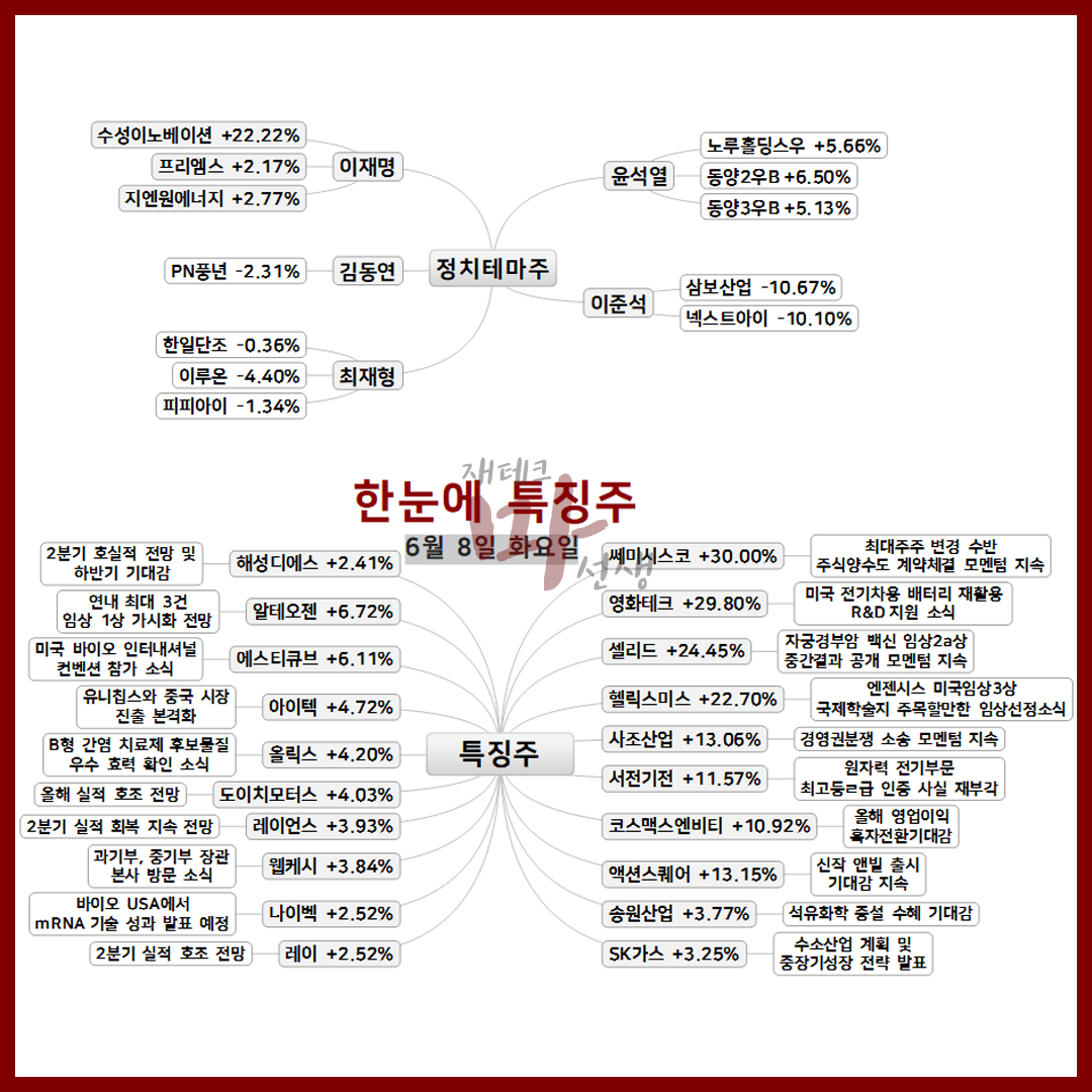 6월 8일 오늘의 상한가 종목 및 이유 :: 대유플러스 영화테크 한전산업 두산2우B 쎄미시스코 주가