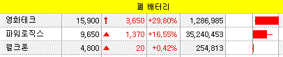 기존 자동차부품주 영화테크, 파워로직스, 웰크론한텍 등의 주가 종목들이 연관성을 보이면서 상승을 보였습니다.