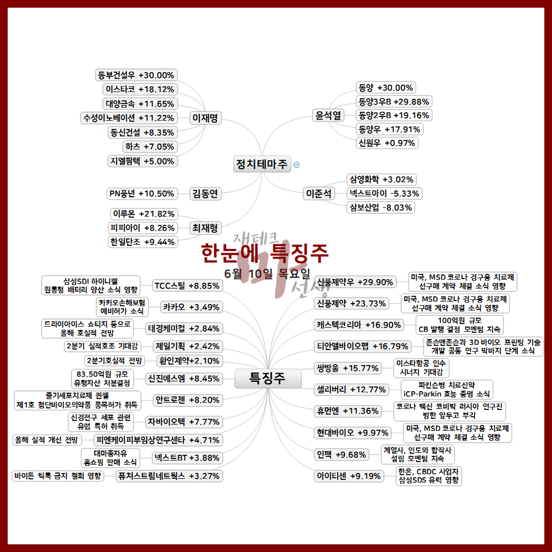 6월 10일 오늘의 상한가 종목 및 이유 :: 동양 신풍제약우 한국정보공학 동부건설우 주가 외