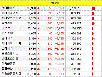 금일 주식시장에서는 에이블씨엔씨, 제이준코스메틱을 포함한 일부 화장품 종목들의 주가 상승을 보였습니다.