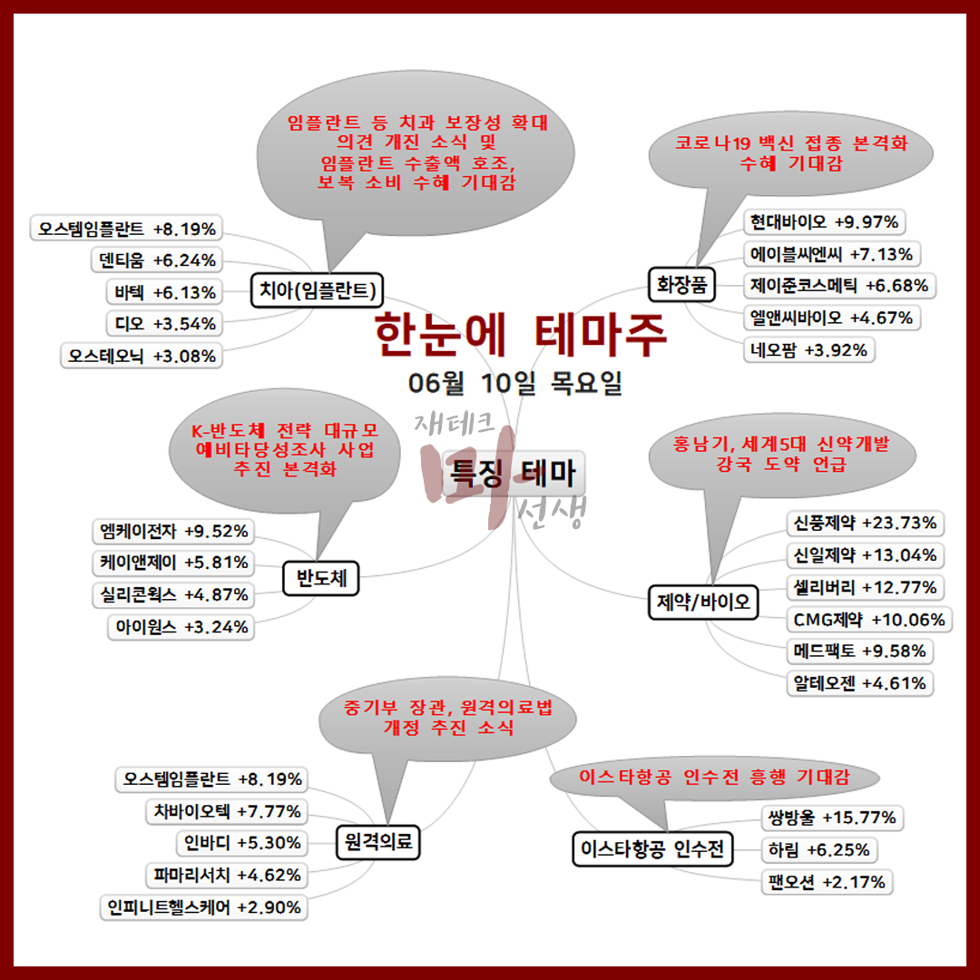 6/10 한눈에 테마주 제약바이오 치아치료 원격진료 화장품 관련주