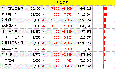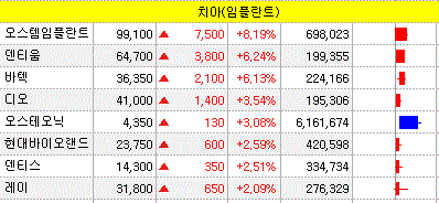 오스템임플란트를 비롯한 차바이오텍, 인바디 등의 종목들이 주가 상승을 보였습니다.