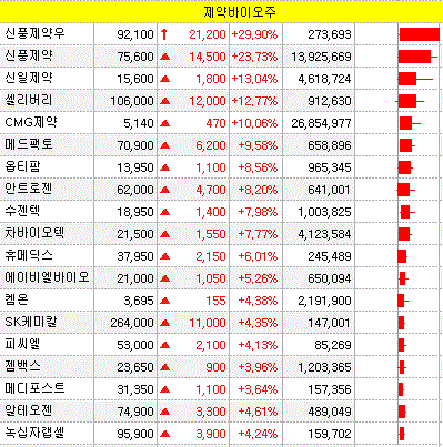 미국發 경구용 코로나 치료제 영향으로 신풍제약과 현대바이오 주가가 크게 부각을 보였으나 전반적인 제약바이오주 상승 분위기가 연출되었습니다.