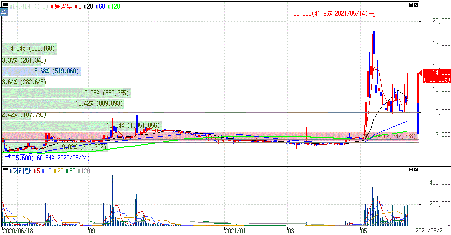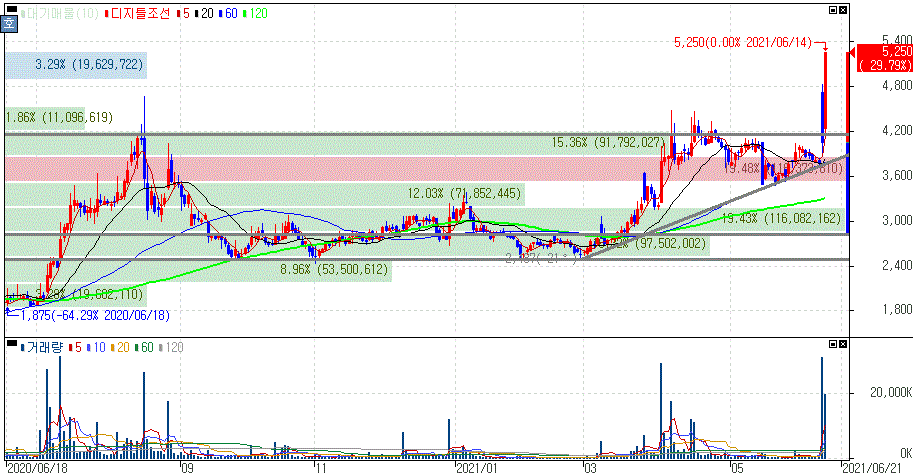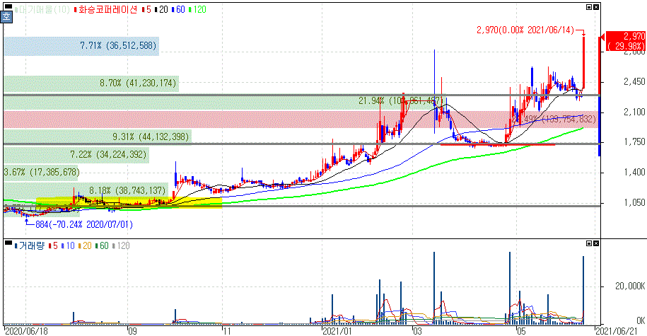 2021년 06월 14일 오늘의 상한가 종목 및 이유 :: 화승코퍼레이션 대교우B 신진에스엠 디지틀조선 주가 외