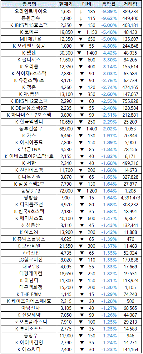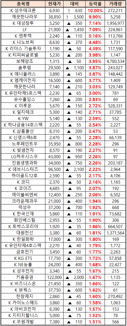 (종목명 앞에 'K'는 코스닥 종목을 의미합니다.)