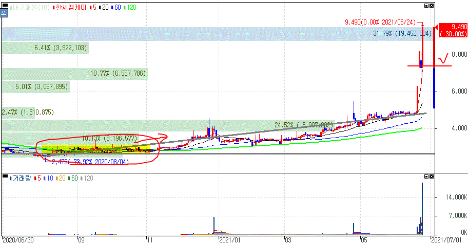 한세엠케이 주가 :: 2021년 06월 24일 오늘의 상한가 종목
