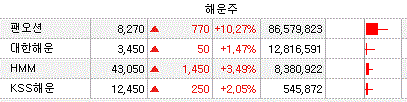 이러한 美 인프라 투자로 물동량 증가 수혜 기대감 등으로 해운주와 건설기계 관련주 종목들의 주가 상승을 보였습니다.
