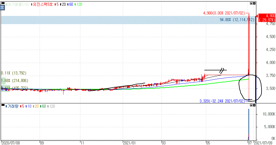 유진스팩5호 주가 :: 2021년 07월 02일 오늘의 상한가 종목