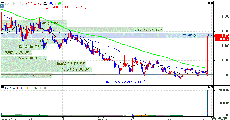지엔코 주가 :: 2021년 07월 09일 오늘의 상한가 종목