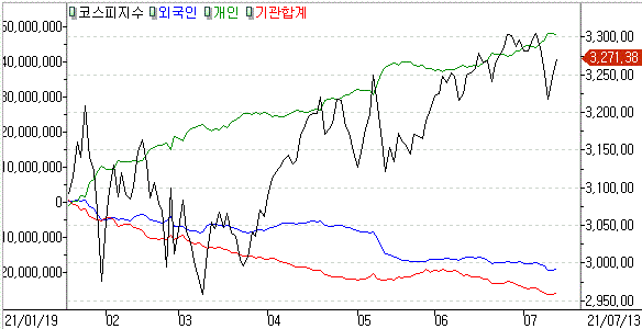금일 코스피 지수는 +0.77% 상승한 3,271.38에 마감하였고, 코스닥 지수는 +0.84% 상승한 1,043.31에 마감하였습니다. 외국인과 기관의 매수세가 들어오면서 지수 저고점으로 가는 상황입니다.