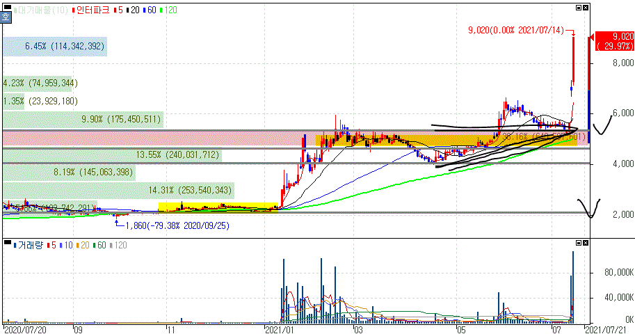인터파크 주가 :: 2021년 07월 14일 오늘의 상한가 종목
