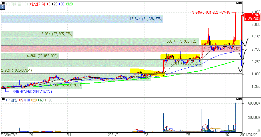 한신기계 주가 :: 2021년 07월 15일 오늘의 상한가 종목