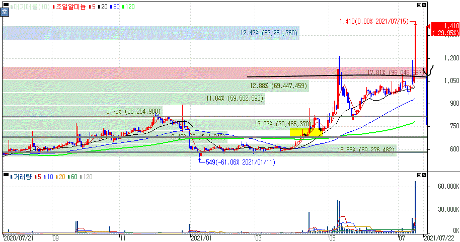 조일알미늄 주가 :: 2021년 07월 15일 오늘의 상한가 종목