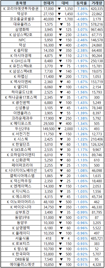시간외 단일가매매 종가 종목 확인시 단순 급등주 등락률만 볼 것이 아니라, '거래량'에 따르는 거래대금도 판단하면서 보는 것이 중요합니다.
