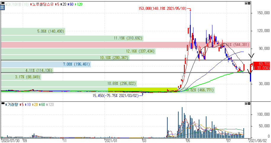 노루홀딩스우 주가 :: 2021년 07월 26일 오늘의 상한가 종목