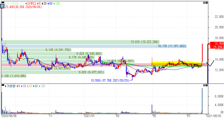 해외 성장 가속화에 따른 영업이익 개선 기대감 등에 상한가를 기록한 이루다 주가 입니다.