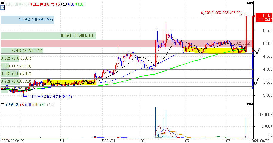 정부, BIG3 산업 내년 5조 이상 재정 지원 소식에 상한가를 기록한 디스플레이텍 주가 입니다.