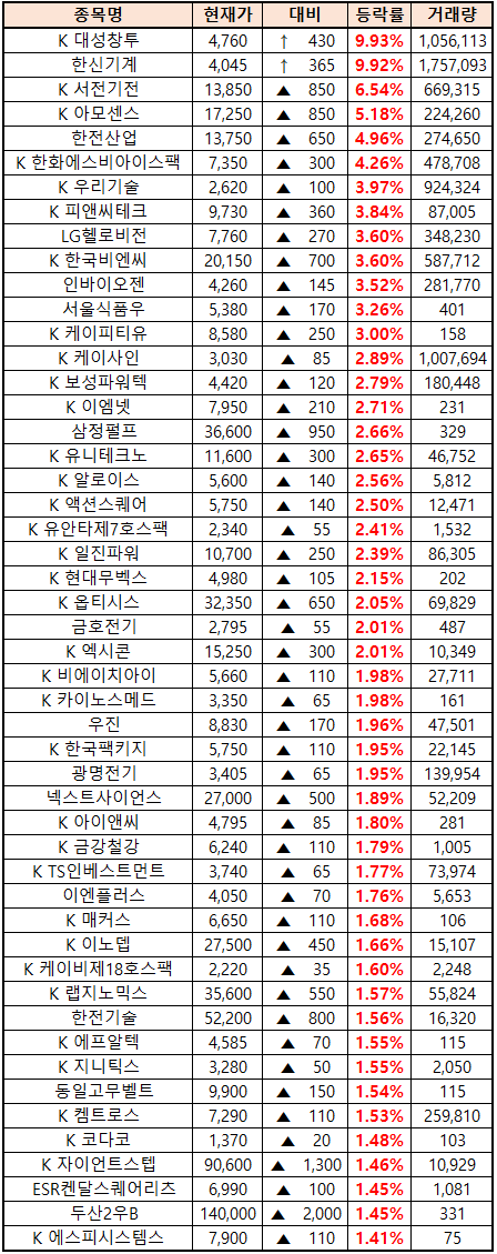 (종목명 앞에 'K'는 코스닥 종목을 의미합니다.)