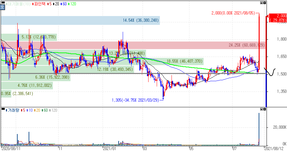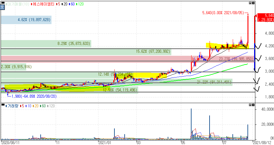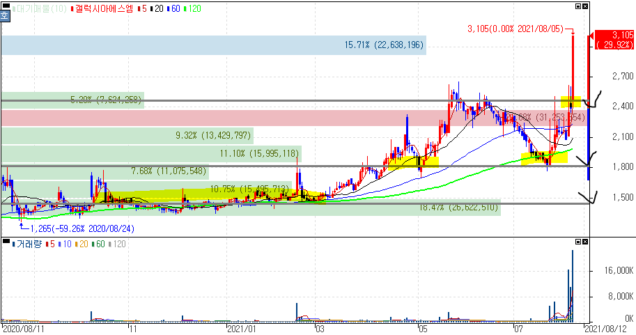 2021년 08월 05일 오늘의 상한가 종목 및 이유 :: 갤럭시아에스엠 에스에이엠티 아즈텍WB 파인텍 한화플러스제2호스팩 주가 외