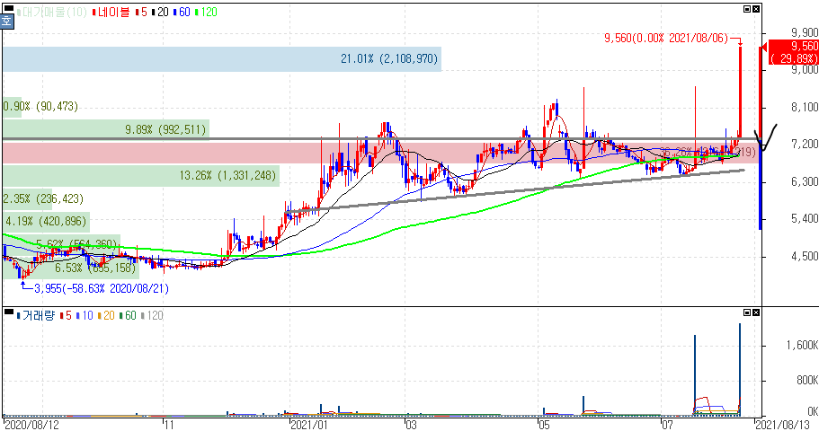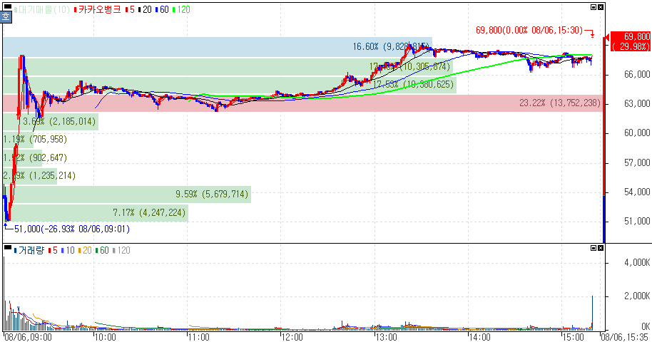 2021년 8월 6일 오늘의 상한가 종목 및 이유 :: 카카오뱅크 네이블 한화플러스제1호스팩 주가 외