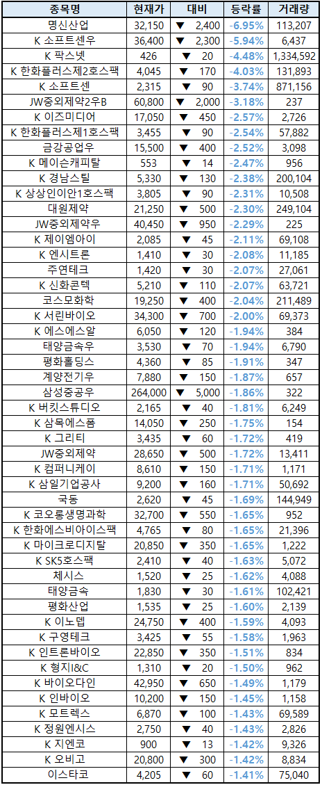 (종목명 앞에 'K'는 코스닥 종목을 의미합니다.)