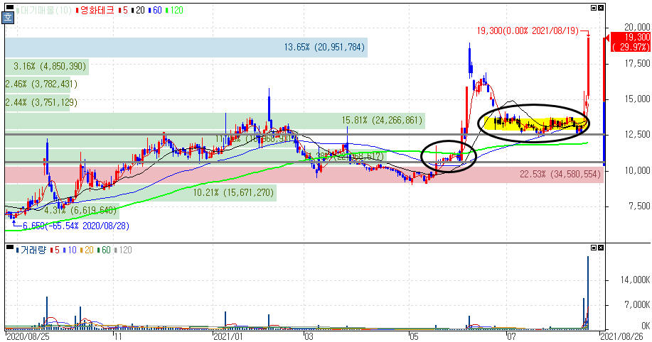 2021년 8월 19일 오늘의 상한가 종목 및 이유 :: 브레인즈컴퍼니 영화테크 주가 외