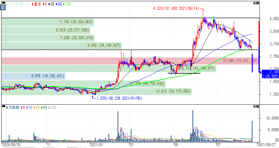 아직 뚜렷한 하한가 이유에 대해서는 나오지 않았습니다만 워낙 요즘 글로벌 증시 하락 속 폭락되는 종목이 많죠. 지금 상황에서 무리한 매매는 가급적 피하는 것이 좋고, 손실이 각 투자자마다 다를 수 있겠지만 이미 그동안 무리한 매매를 진행했던 투자자라면 요즘 가장 많이 힘들 수 밖에 없을겁니다.