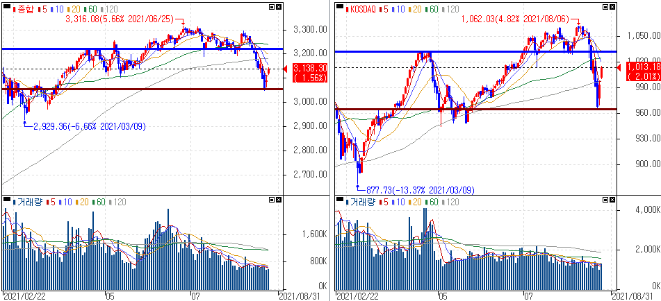 금일 코스피 지수는 +1.56% 상승한 3,138.30에 마감하였고, 코스닥 지수는 +2.01% 상승한 1,013.18에 마감하였습니다. 나스닥 최고치에 아시아 증시가 전반적으로 오르면서 상승을 보였습니다.
